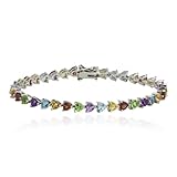 Discount Sterling Silver Multi-Gemstone Heart Bracelet, 7.25"