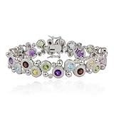 Low Price Sterling Silver Multi-Gemstone Circle Design Bracelet, 7.25"