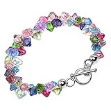 I love everything swarovski and usually buy my jewelry directly from them but it does get a bit expensive. Then I found this vendor on Amazon and after reading the reviews, I decided to give them a try and order a bracelet. Actually I ordered two. That was on Thursday, 4/29 and I got them TODAY, Tuesday, 5/4. It looked exactly as the picture and I don't find the crystals too large or gawdy at all. I don't know what that other reviewer was talking about. Usually they would be a lot smaller than depicted on a picture but this one was exact. The size fits. I have an average wrist and the bracelet is the perfect size for me. That was mostly what I was worried about. But no problem. It was easy to fasten, not to tight...I hardly notice it on at all. It doesn't move, stays in place. And oh what sparkle! I'm definitely going to order another color before they raise the price! Buy it, you won't be disappointed and it came in 4 business days from the East coast to the west coast with free shipping! Usually with free shipping it takes a lot longer because they ship it the cheapest way possible but not these people. I AM DEFINITELY MAKING ANOTHER PURCHASE.Get more detail about Multi Color Swarovski Crystal Sterling Silver 7.5" Bracelet With Toggle Clasp.