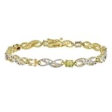 Purchase 18k Gold Overlay Sterling Silver Genuine Multi-Gemstone Link Bracelet w/ Diamond-Accent, 7.25"