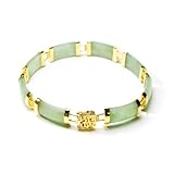 This jade bracelet is prettier then the picture. This is a gift for a friend and I am so pleased with my purchase.Get more detail about Gold Overlay Sterling Silver Green Chinese Jade Eight-Section Tabular Bracelet w/ "Good Luck" Character Clasp, 7.5".