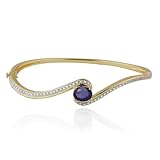 Save Yellow Gold Overlay Sterling Silver Sapphire and Diamond Bangle Bracelet