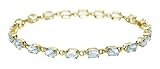 Lovely bracelet if you like a clear look with a hint of color. The picture presented is clearly showing a light color of aquamarie. The bracelet received looks clear.Get more detail about 10k Yellow Gold Aquamarine Bracelet, 7".