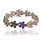 I just received this multi-gemstone, diamond and flower bracelet. The website photo does not do it justice. This bracelet is stunning and I highly recommend it. The gemstones are vibrant in color and they really sparkle. And, I like the vertical diamond links between each flower. This website has a less expensive version of this bracelet which has chain links connecting the flowers, but I feel the vertical diamond connecting links on this bracelet give this bracelet more continuity and a flawless look. Initially, when I was thinking about buying it, I thought the smokey quartz might not look good since most gemstone line bracelets omit smokey quartz. But, once I received it, I was surprised to see how pretty the smokey quartz looks along with the other gemstones. It gives the bracelet more substance and versatility, making it a good all-year-round bracelet and not one just for spring and summer. It was a bit pricey for my budget right now, but the fact that I will get lots of use out of it makes it a good buy.Get more detail about 18k Yellow Gold Overlay Sterling Silver Multi-Gemstone and Diamond Flower Bracelet, 7.25".