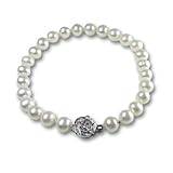 *Free Shipping* White 6-7mm AAA Cultured Pearl Bracelet w. Platinum Overlay CAREFREE Sterling Silver Rose Clasp 7" (LS1R2) This instant