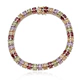 ROGER CANNONGet more detail about 18k Yellow Gold Overlay Sterling Silver Multi-Gemstone and Diamond Bracelet, 8.25".