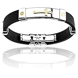 Stainless Steel and Black Rubber Bracelet With Gold Plated Cross