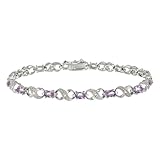 This is a pretty bracelet. The color of the stones is very light, though. The light lavender stones do not have much contrast against the silver. So, it is pretty but not strikingly so.Get more detail about Sterling Silver Genuine Amethyst X/O Bracelet w/ Diamond-Accent, 7.25".
