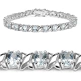 Order Classic 12.00 Carat "XOXO" style Genuine Blue Topaz Ovals Sterling Silver Bracelet